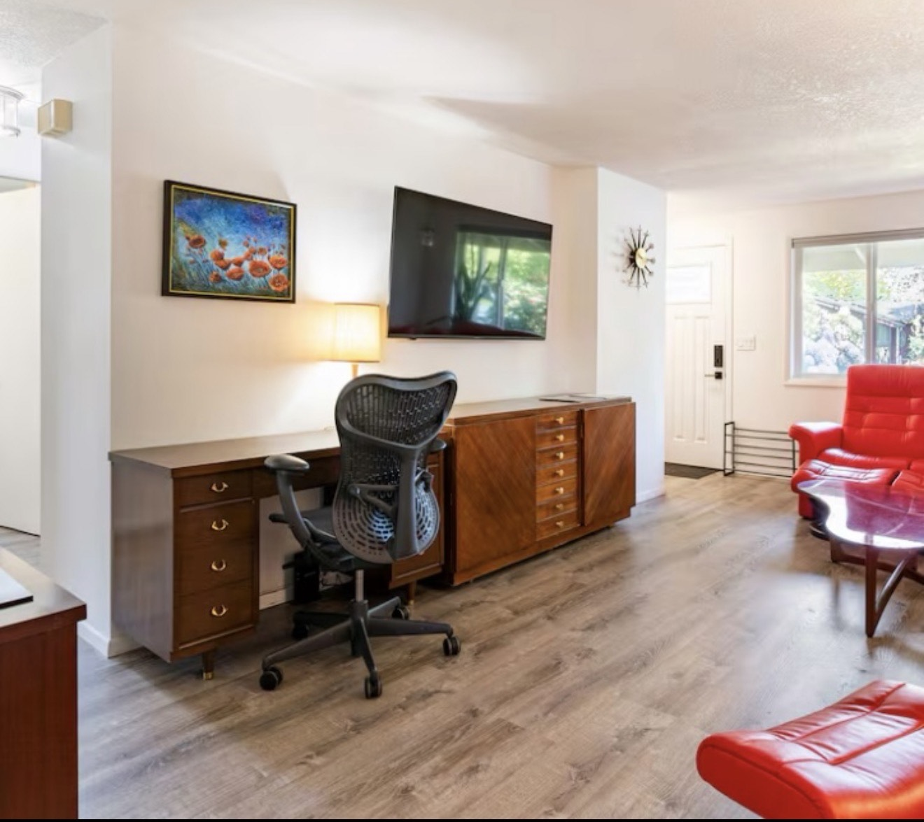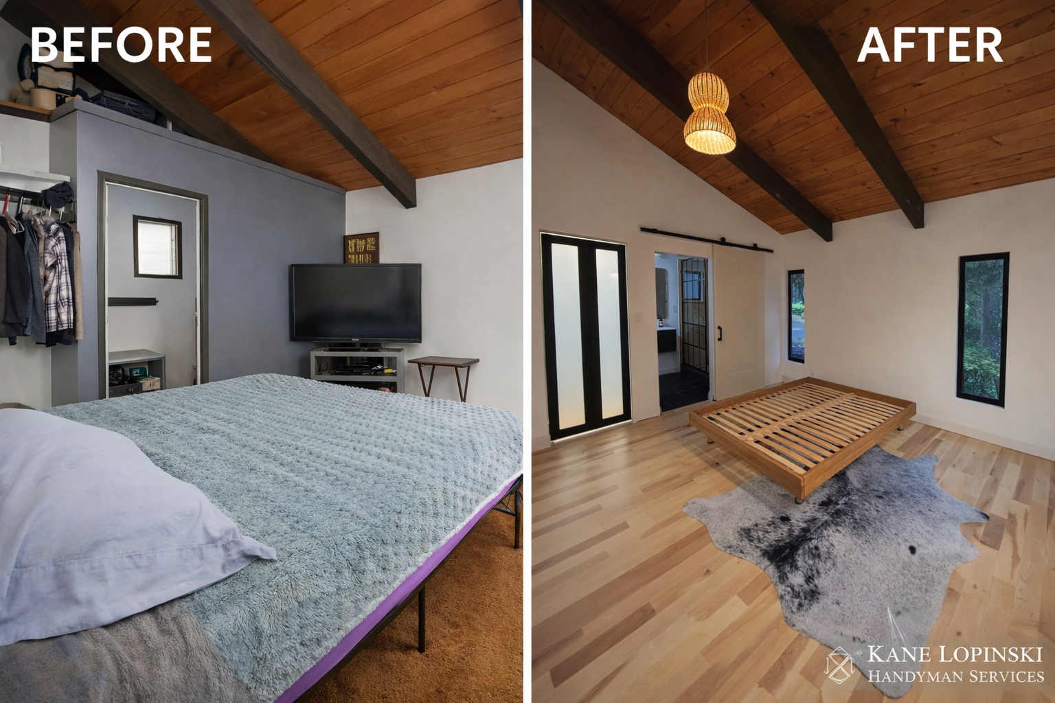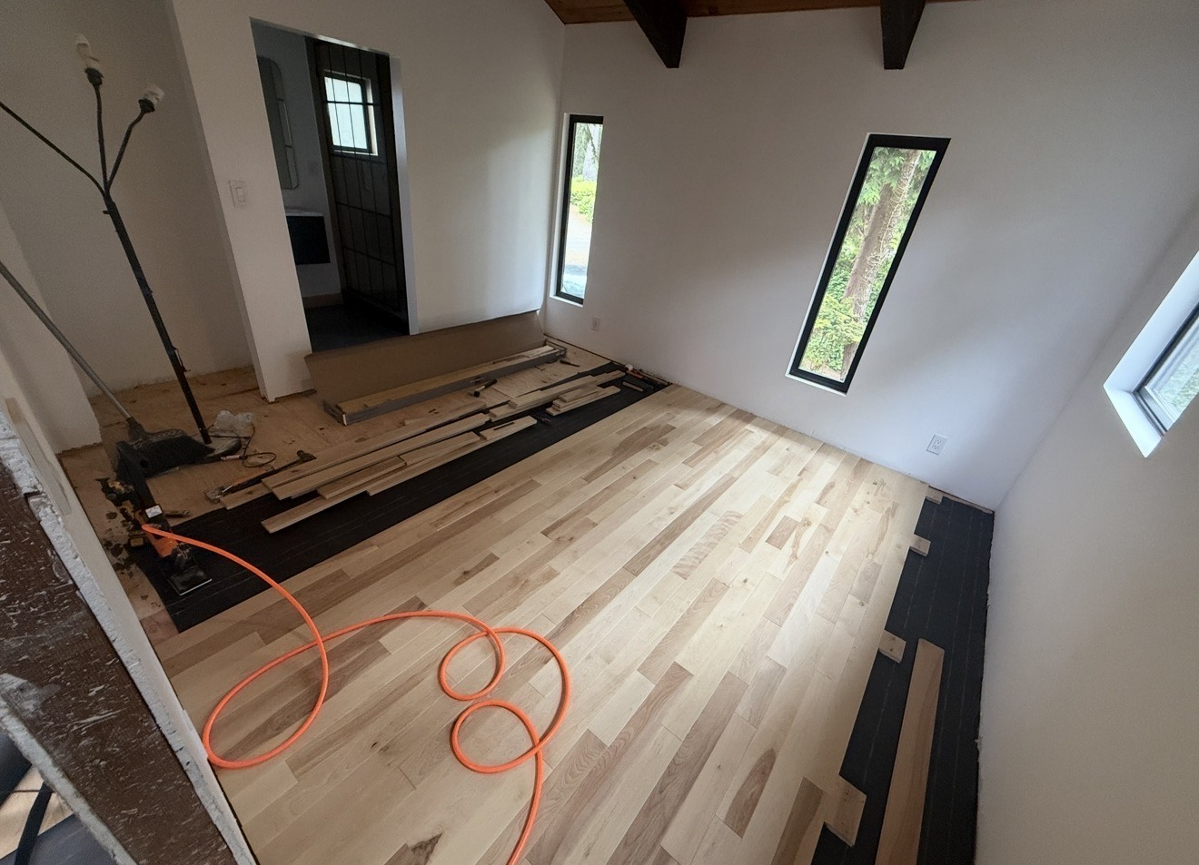 Gleneden Beach • Full carpet removal and hardwood installation transforming the space into a clean, modern finish.